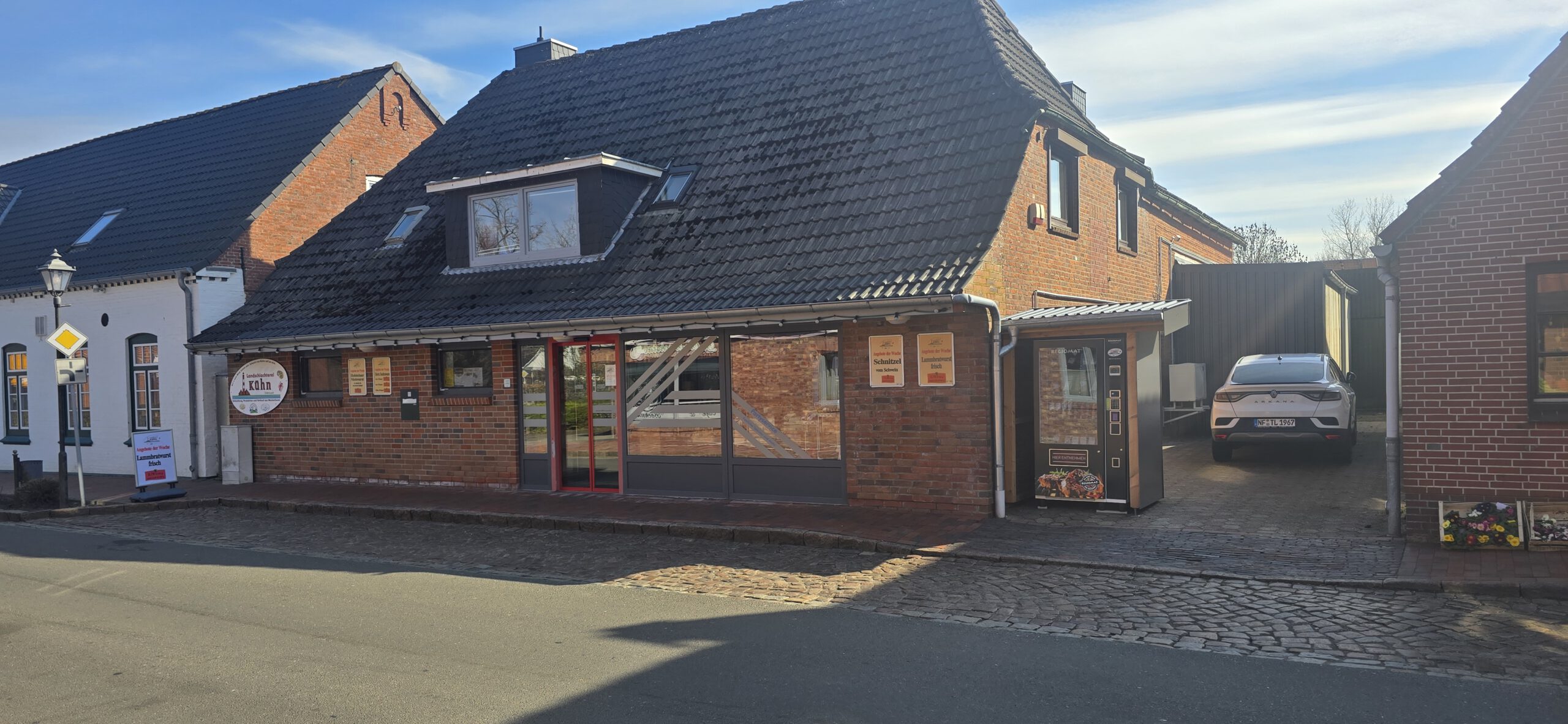 Wir freuen uns sehr über unseren neuen Regiomaten direkt an unserer Landschlachterei in Oldenswort, der Sie ab sofort rund um die Uhr (24/7) mit unseren regionalen, frischen Produkten versorgt.